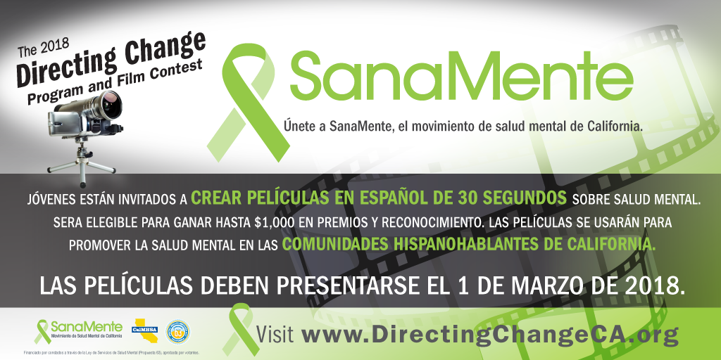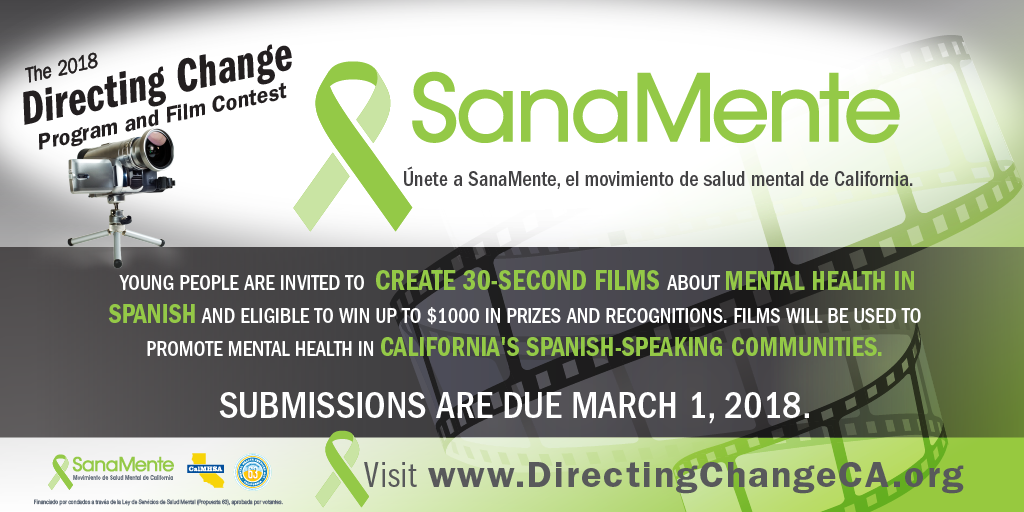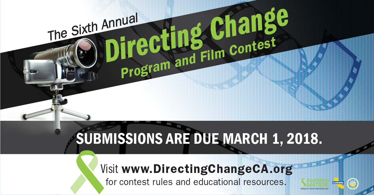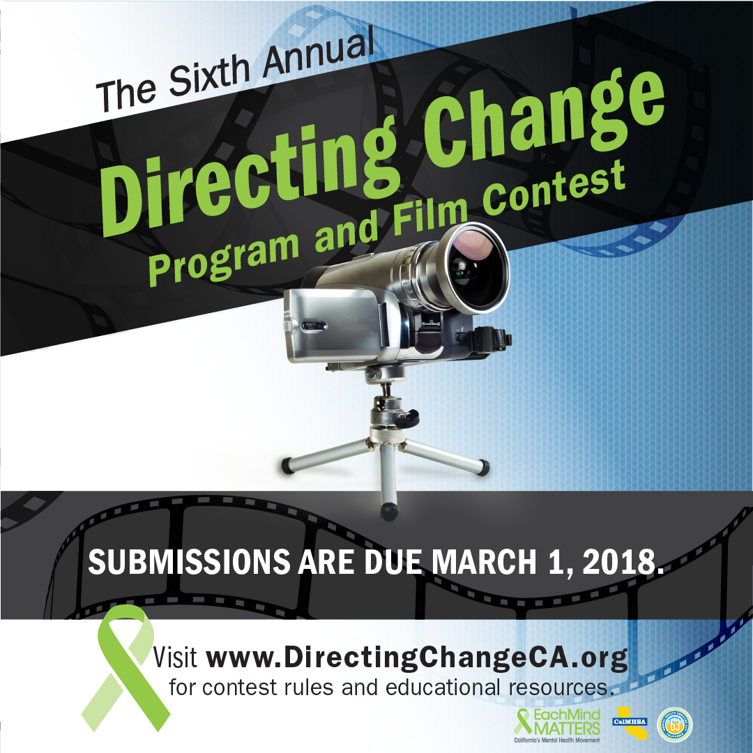The Directing Change Program & Film Contest is an evaluated youth engagement program. The program engages students and young people throughout California to learn about the topics of suicide prevention and mental health by creating 30-second and 60-second films about suicide prevention, mental health and through the lens of culture, exploring the topics in different languages and from the perspective of different cultures.