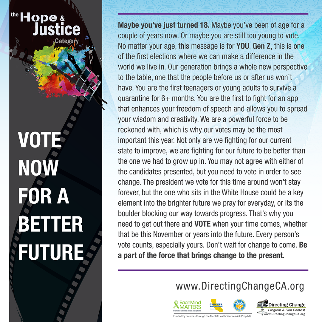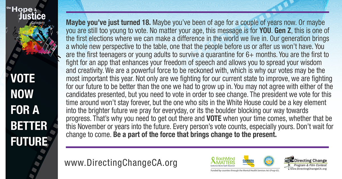 These files provide a selection of static (png) and animated (mp4) social media posts and videos as part of the Directing Change category Hope and Justice.