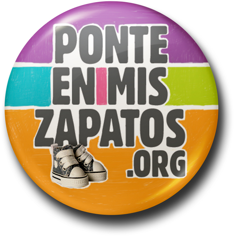 El botón de Ponte En Mis Zapatos incluye archivos de diseño con el logotipo de la campaña listos para imprimir y distribuir a jóvenes estudiantes entre las edades de 9 a 13 años para recordarles de las lecciones del programa, Ponte En Mis Zapatos. El botón simboliza que es importante valorar y aceptarse unos a otros y a si mismos al enfrentar un reto de salud mental y recordarles que hay recursos de ayuda disponible.