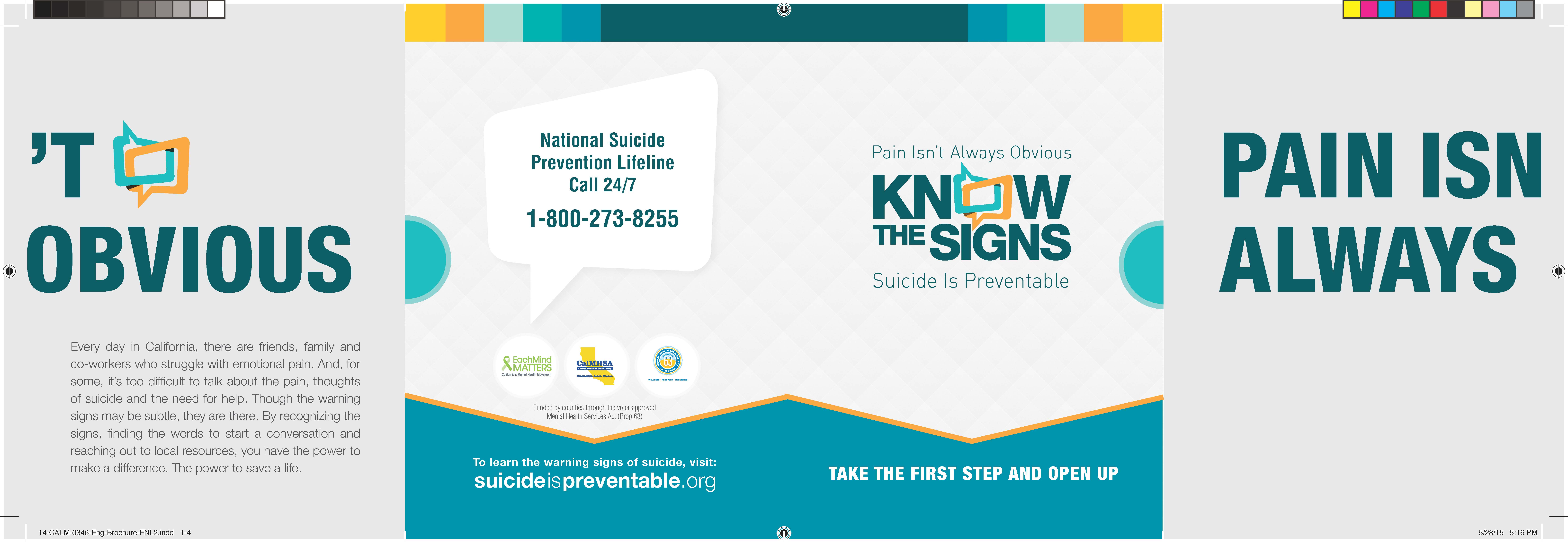 This four-panel, pocket-size brochure provides information about warning signs, how to find the words to offer support to someone and a link to the campaign website for national and local resources (www.suicideispreventable.org).