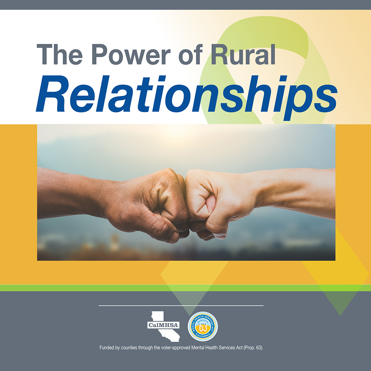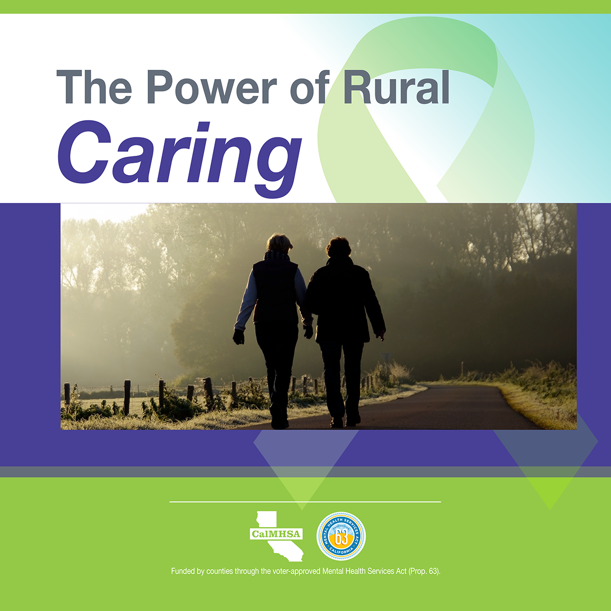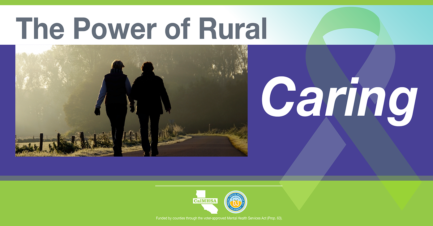 Several characteristics of rural life can compound the risk of suicide, including isolation, limited behavioral health services, and the impacts of natural disasters such as wildfires and drought. Yet rural areas are also characterized by strong and tight-knit communities with a willingness to come together in times of trouble. Rural residents are resourceful, know their neighbors and will have each other's backs when they know what to look for and how to help. These rural community resources are meant to celebrate our California rural communities. These resources were developed in support of National Rural Health Day (November 18th, 2021) and to shine light on the strength, resiliency, and power of rural communities, join in celebrating the power of rural with these resources, but can we used throughout the year.